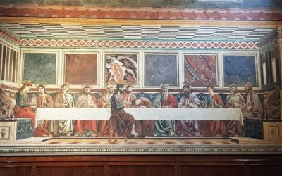 After the works promoted in 1440 by Abbess Cecilia Donati, the refectory— a large rectangular hall with a coffered ceiling that served as a dining hall— was frescoed on an entire wall by Andrea del Castagno in 1447.